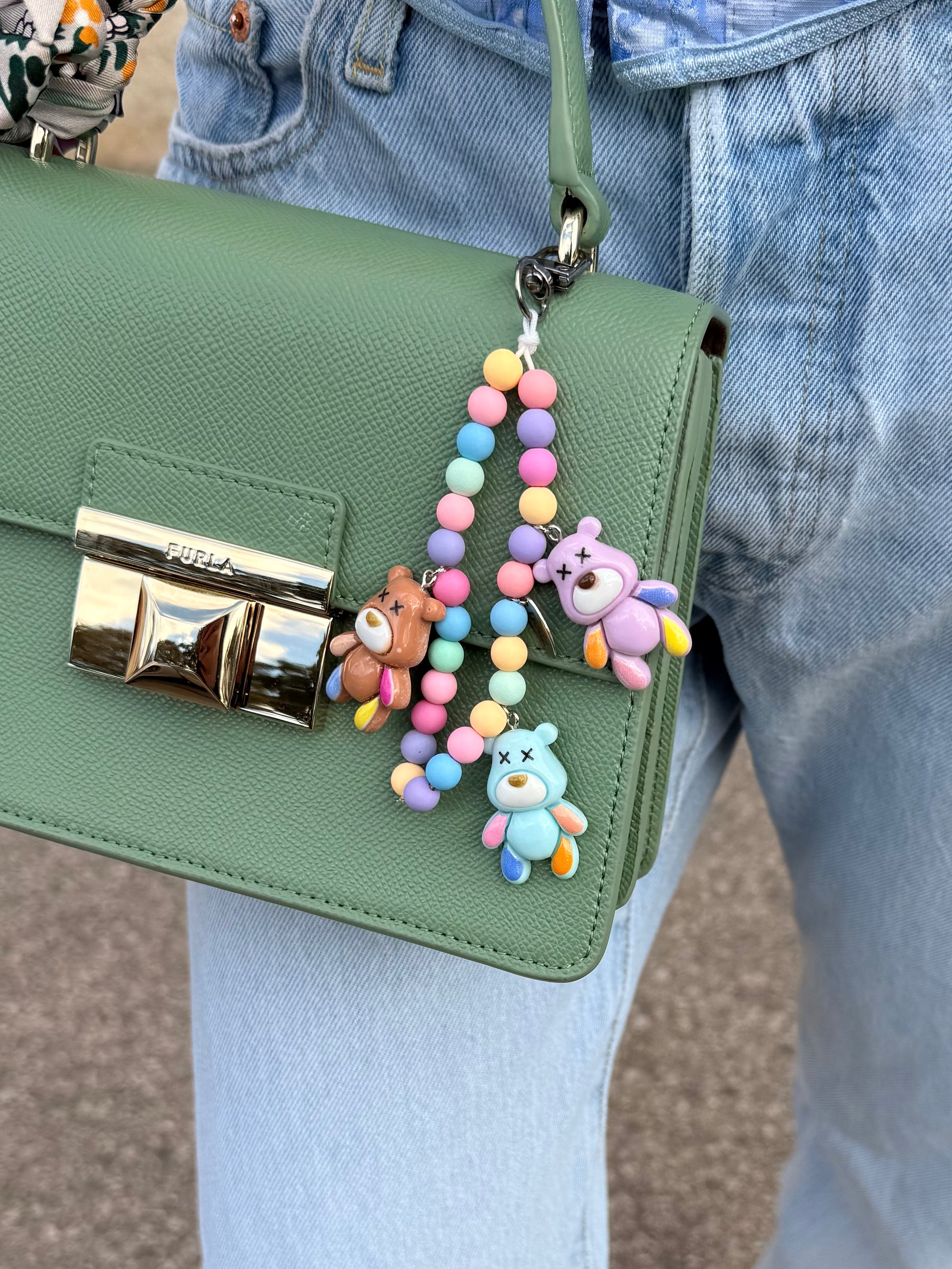 Materials: Acrylic bear charms, colorful beads, and durable metal hardware.